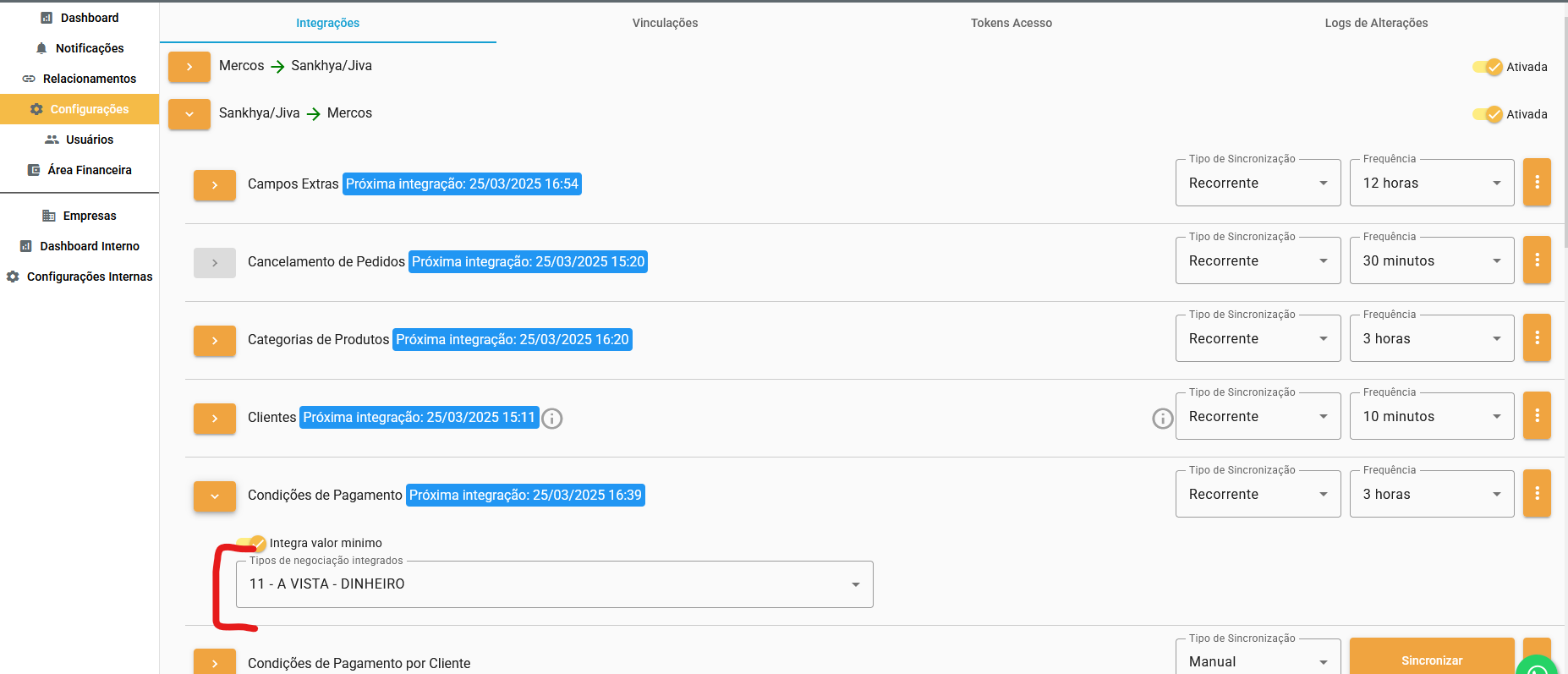Caso tenha feito isso pois algum pedido estava com uma condição manual e deu erro, lembre de entrar no Mercos e trocar a Condição do pedido para uma que integrou.