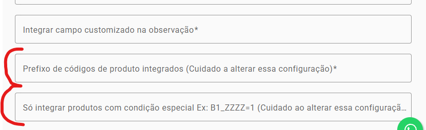 Para filtrar as grupos ou tipos de produto que você quer integrar, você deve seleciona-las nas configurações.