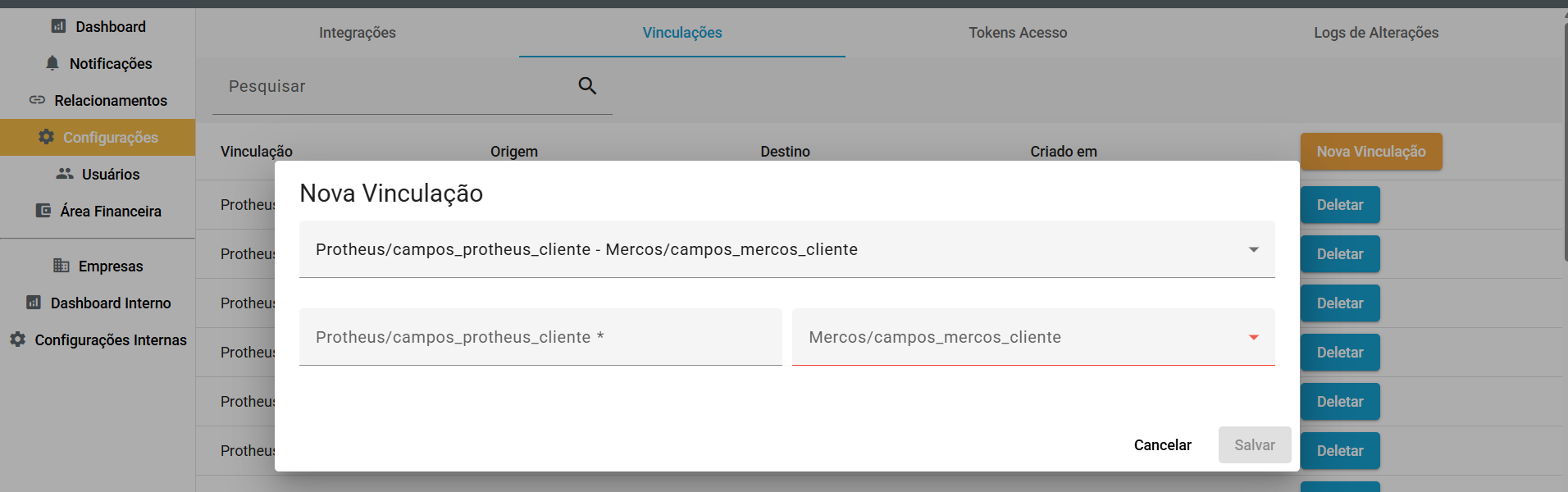 - Selecionar a vinculação de campos protheus CLIENTE e campos Mercos CLIENTE