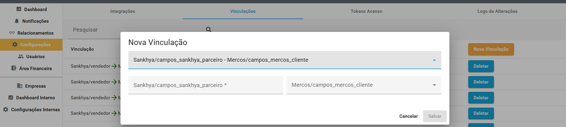 - Selecionar a vinculação de campos sankhya e campos Mercos